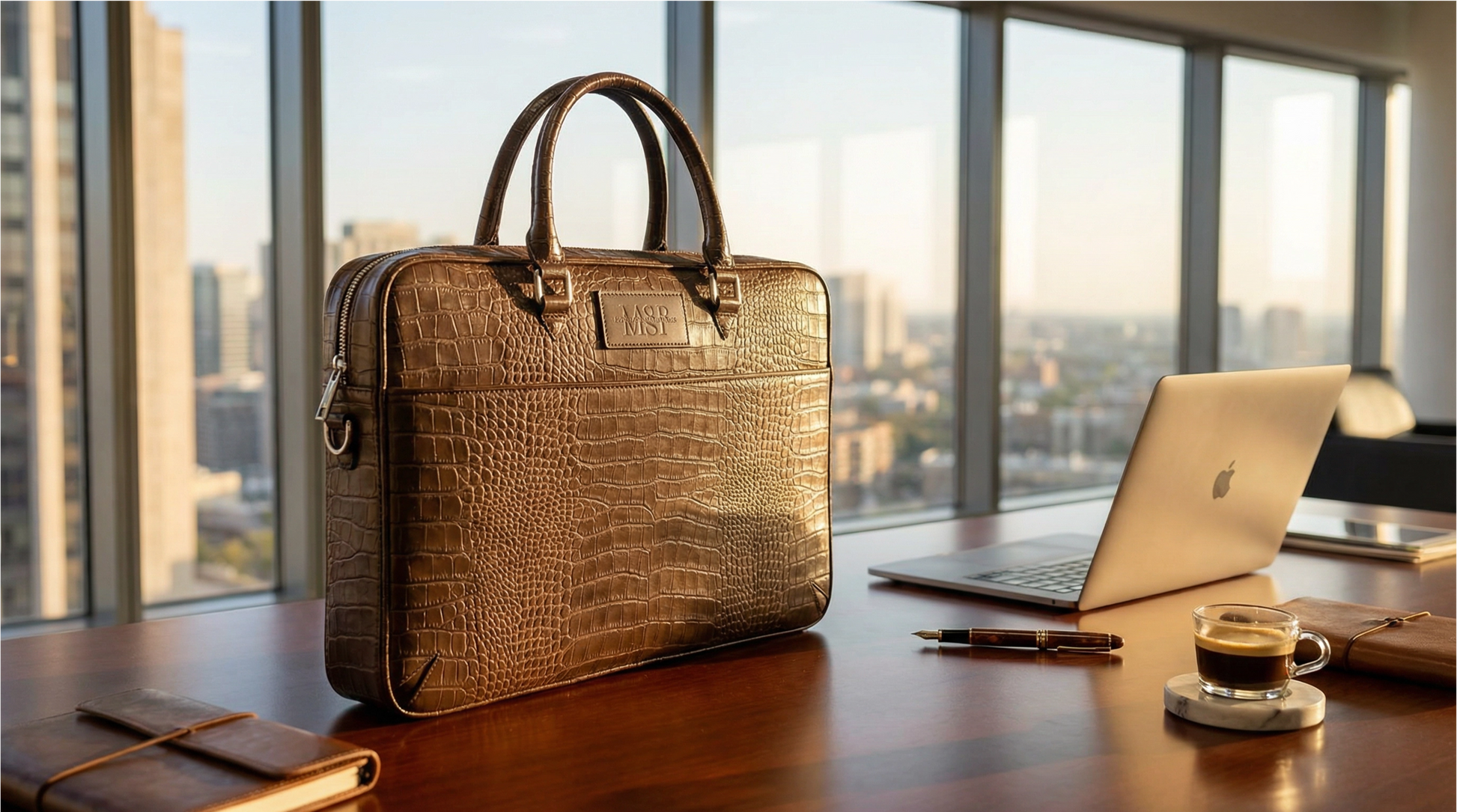 حقيبة Ambassador 1.0 المصنوعة من الجلد بنقشة جلد التمساح هي قطعة مميزة للغاية. هذه الحقيبة مصممة للمحترفين الذين يدركون أن الفخامة تكمن في التفاصيل.