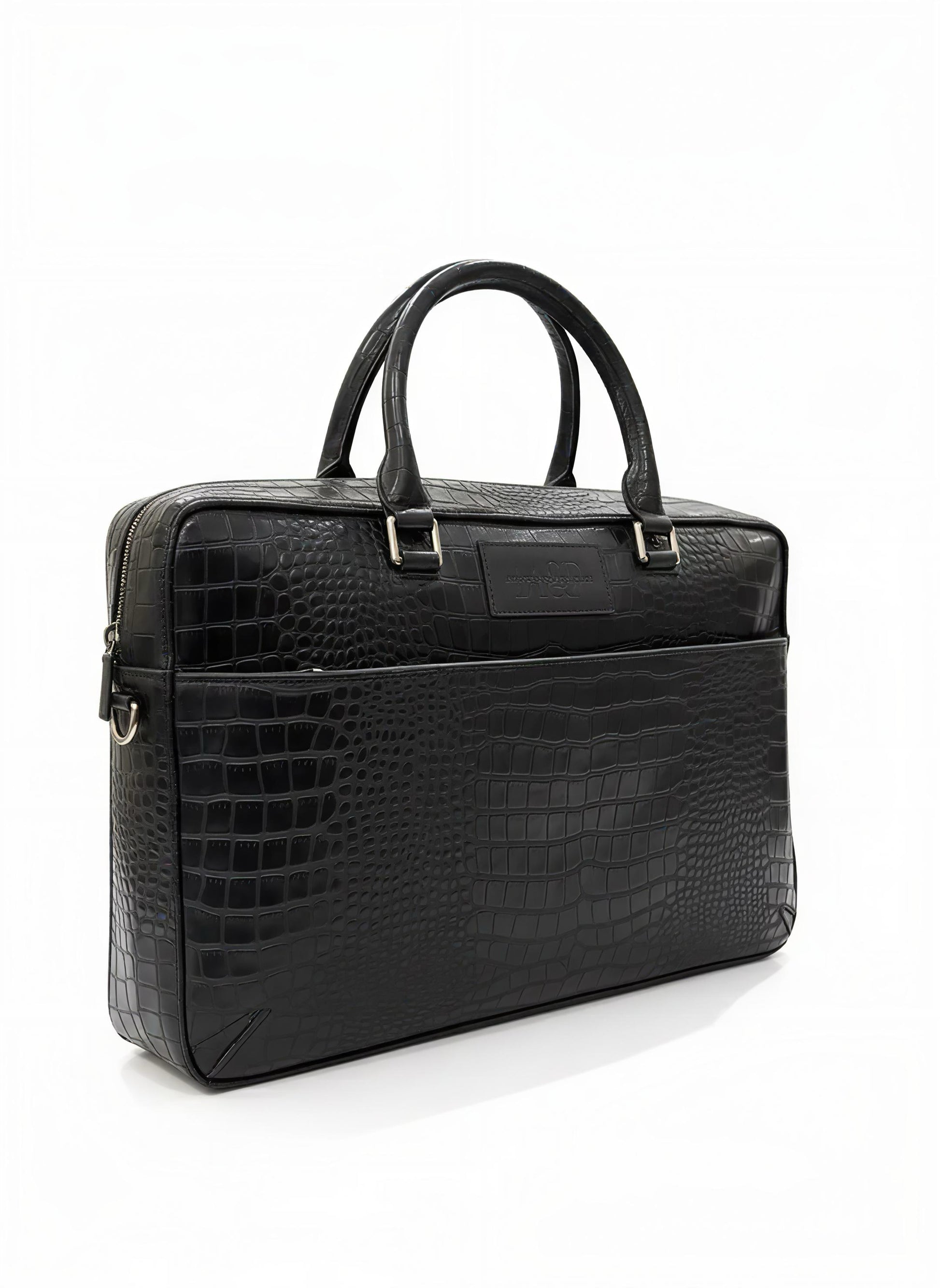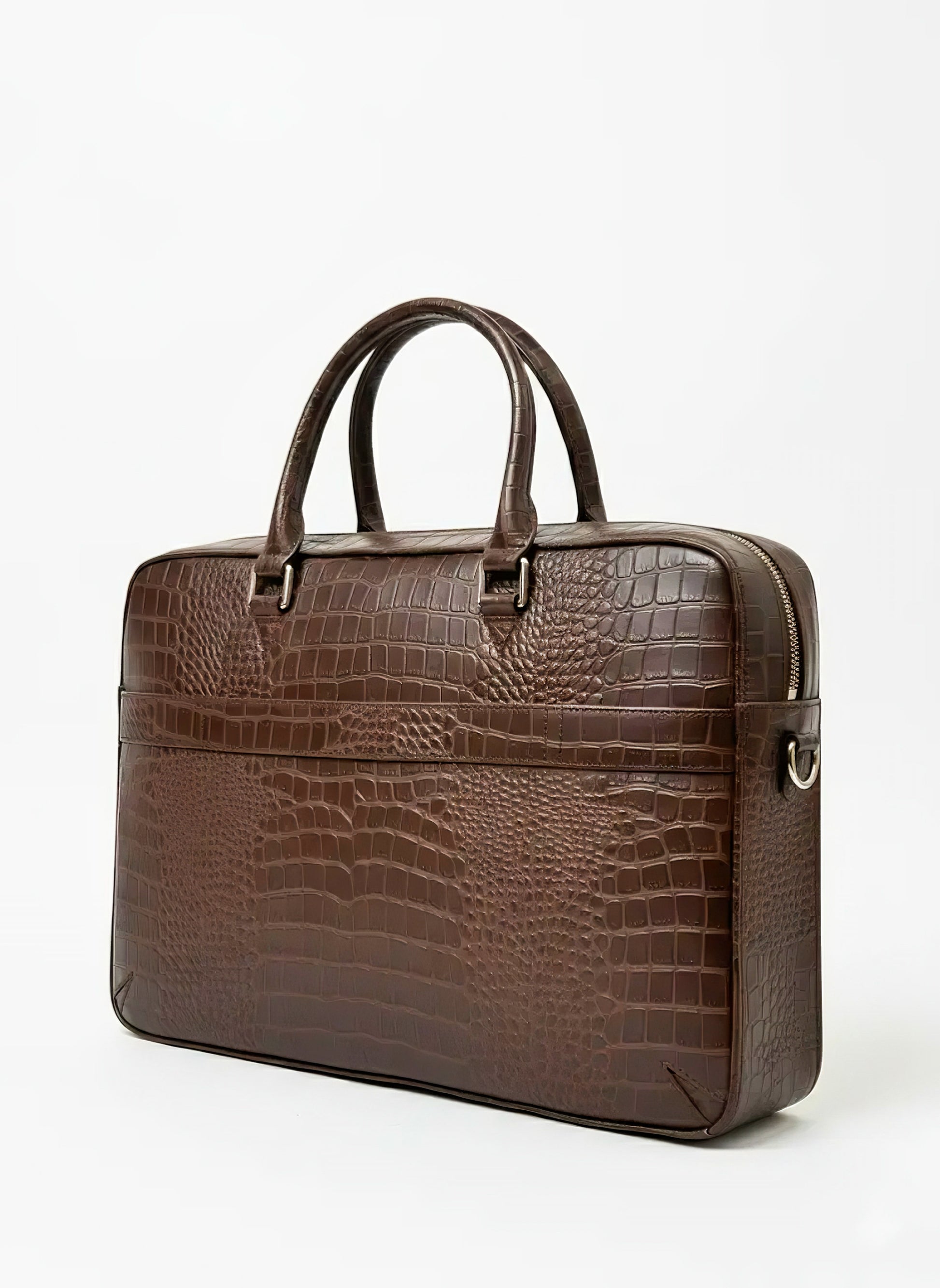 Elevate your work attire with this refined satchel. Featuring a crocodile-inspired texture and minimalist layout, it adds a touch of class and practicality to the contemporary businessman's ensemble.