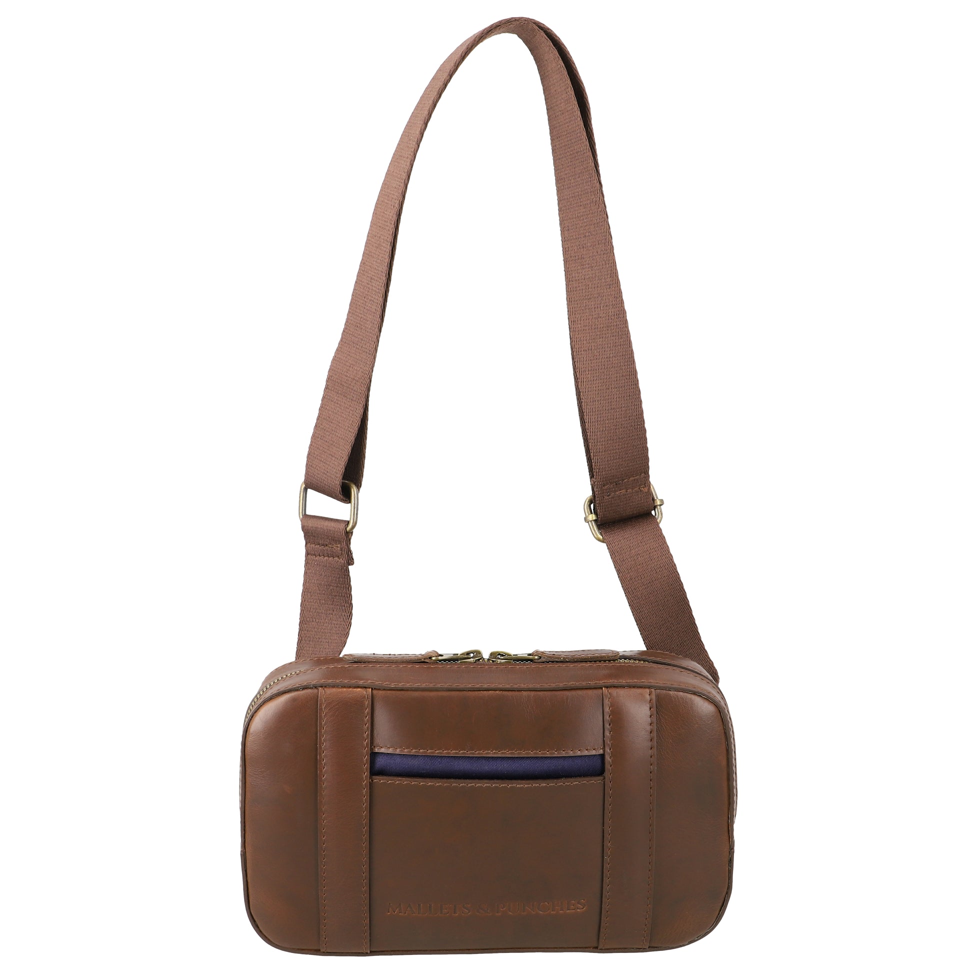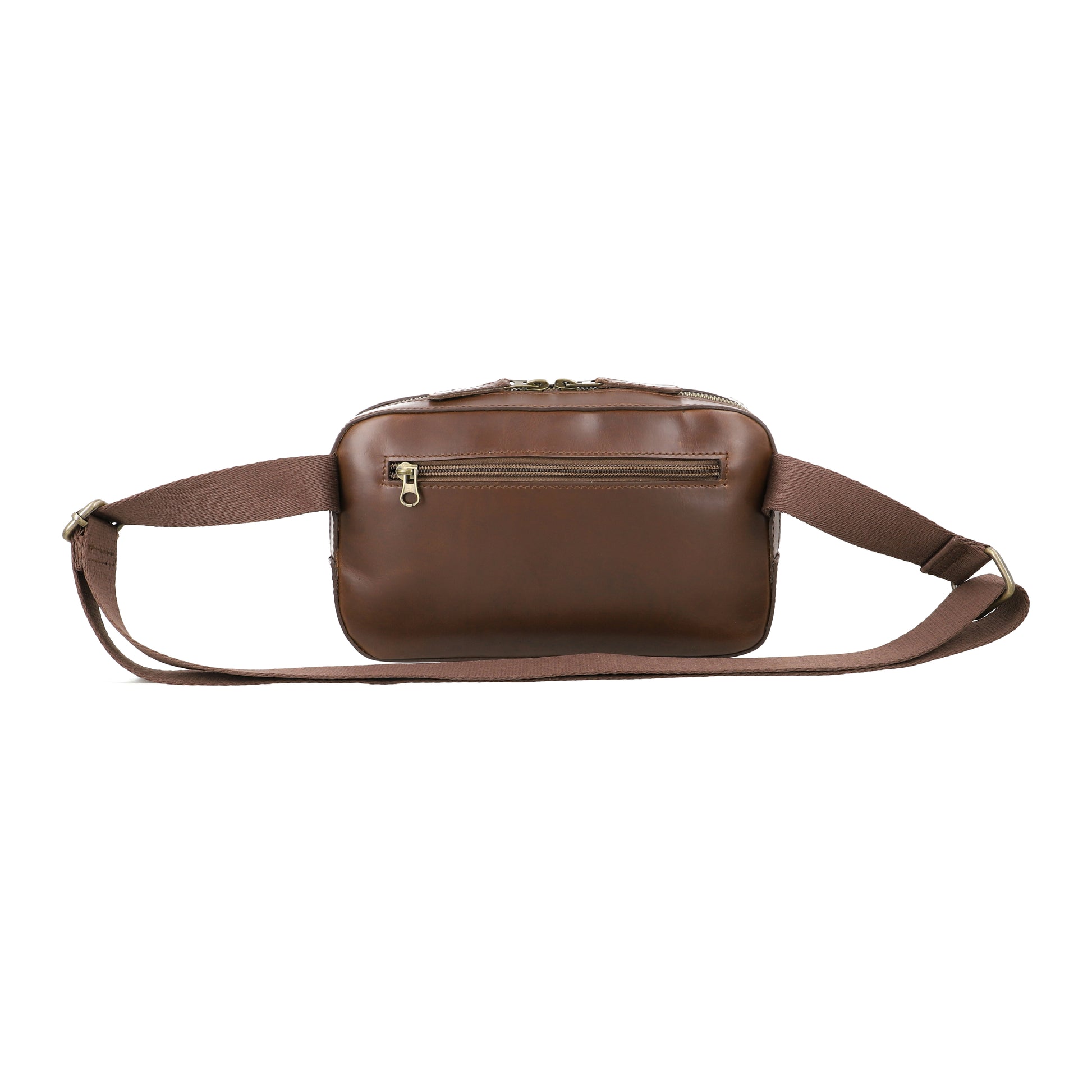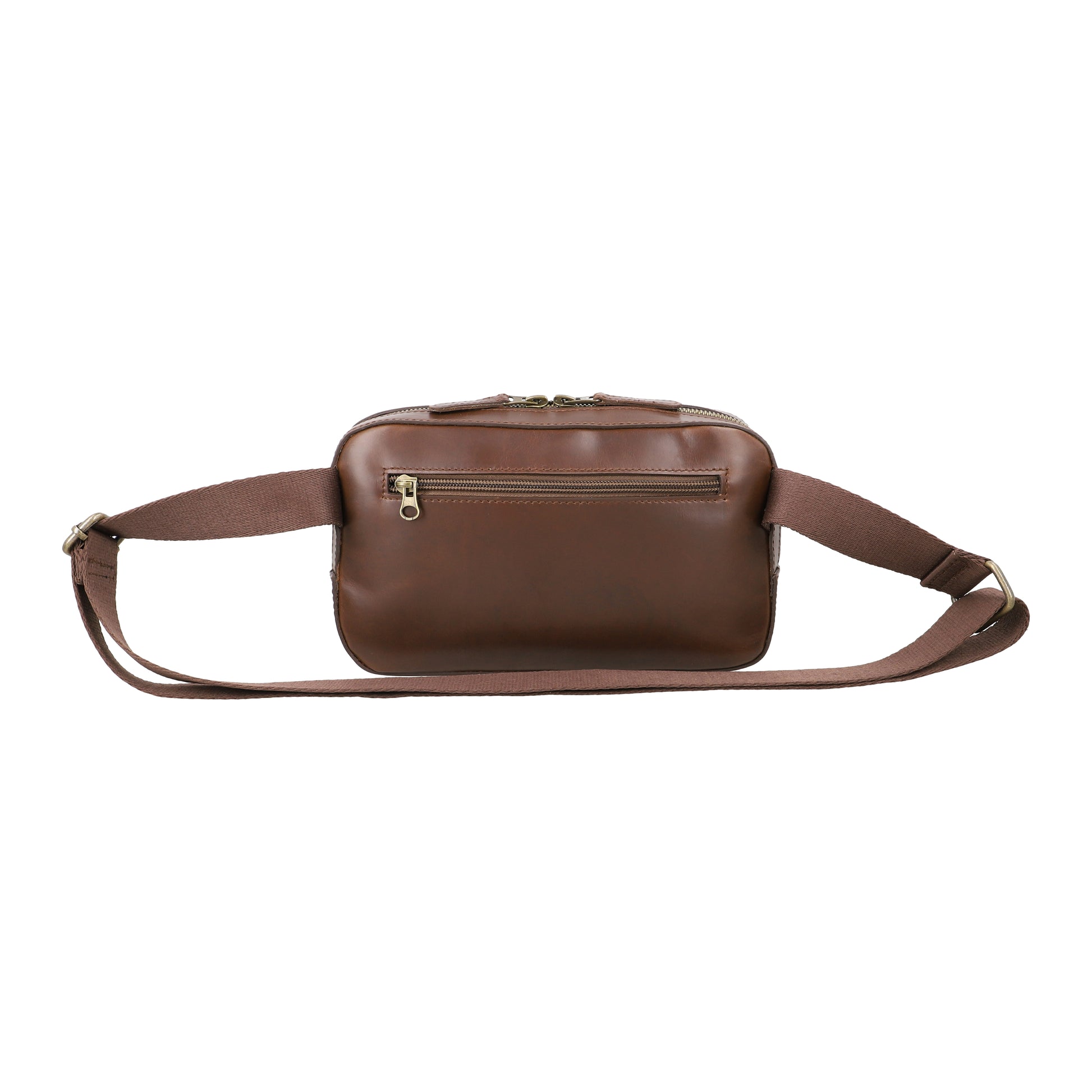 Crafted from premium full-grain leather, the Nomad Sling is designed for modern explorers who value both style and function. Its compact form offers smart storage with a front quick-access pocket and secure zippered main compartment—ideal for everyday essentials. Finished with antique brass hardware and a durable cotton strap, this sling is your go-to for effortless urban mobility.